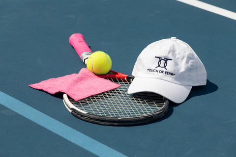 Shari and Sally are friends and tennis players who launched Touch of Terry in 100-degree weather to soak up the sweat. Side stripes of terry cloth ensure players can get a grip on their game without a trip to the bench for a towel. That’s because a touch of terry cloth is where you need it, when you need it—whenever you’re wearing Touch of Terry!